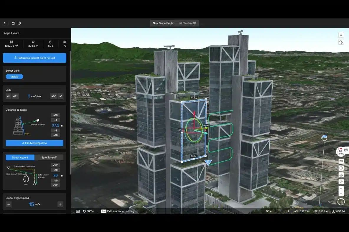A FlightHub 2 nagyban leegyszerűsíti a bonyolult repülési útvonalak megtervezését különféle küldetésekhez. A „what you see is what you get” (WYSIWYG) alapú 3D útvonal-szerkesztés intuitív és élményszerű tervezést biztosít, ahol a kezelő valósághűen láthatja, hogyan fog a drón repülni.